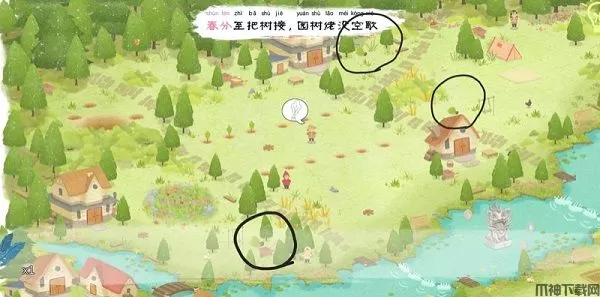 6、惊蛰在左上角中间那个洞(点几下会出来),然后拿旁边的梨子给他食枇杷树场所如图。