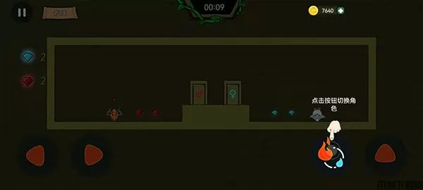 2、小编以单机模式为例,点击右下角的按钮,可以控制切换冰与火角色,开始冒险。