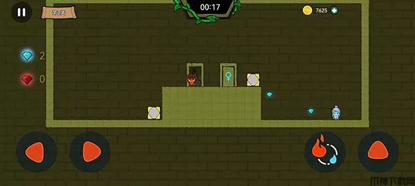 3、在游戏中,放置了很多种道具供大家使用,例如这块石头,玩家需要操控火娃娃将那块石头推下去,这样冰娃娃才能轻松跳跃上来。