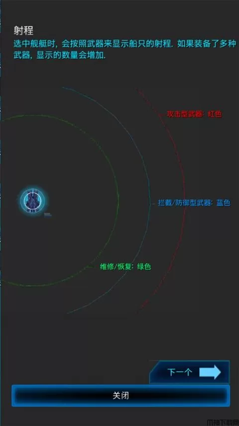 选中舰艇时,会按照武器来显示船只的射程。如果装备了多种武器,显示的数量会增加。