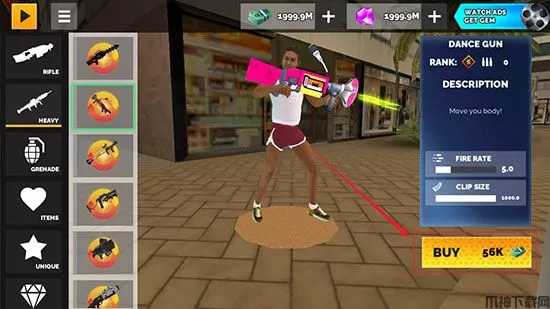 4、挑选你需要的武器,点击【BUY】购买即可;