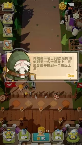 3、拖动士兵可以进行合成升级,有点像自走棋的玩法