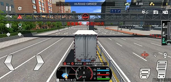 5、在运输过程中,玩家通过下方地图导航至运输终点,但在运输途中注意系好安全带(安全带时刹车上方的红色图标),并且不要违反交通规则、以及撞车等,不然不仅会返款扣钱,还会造成货损。