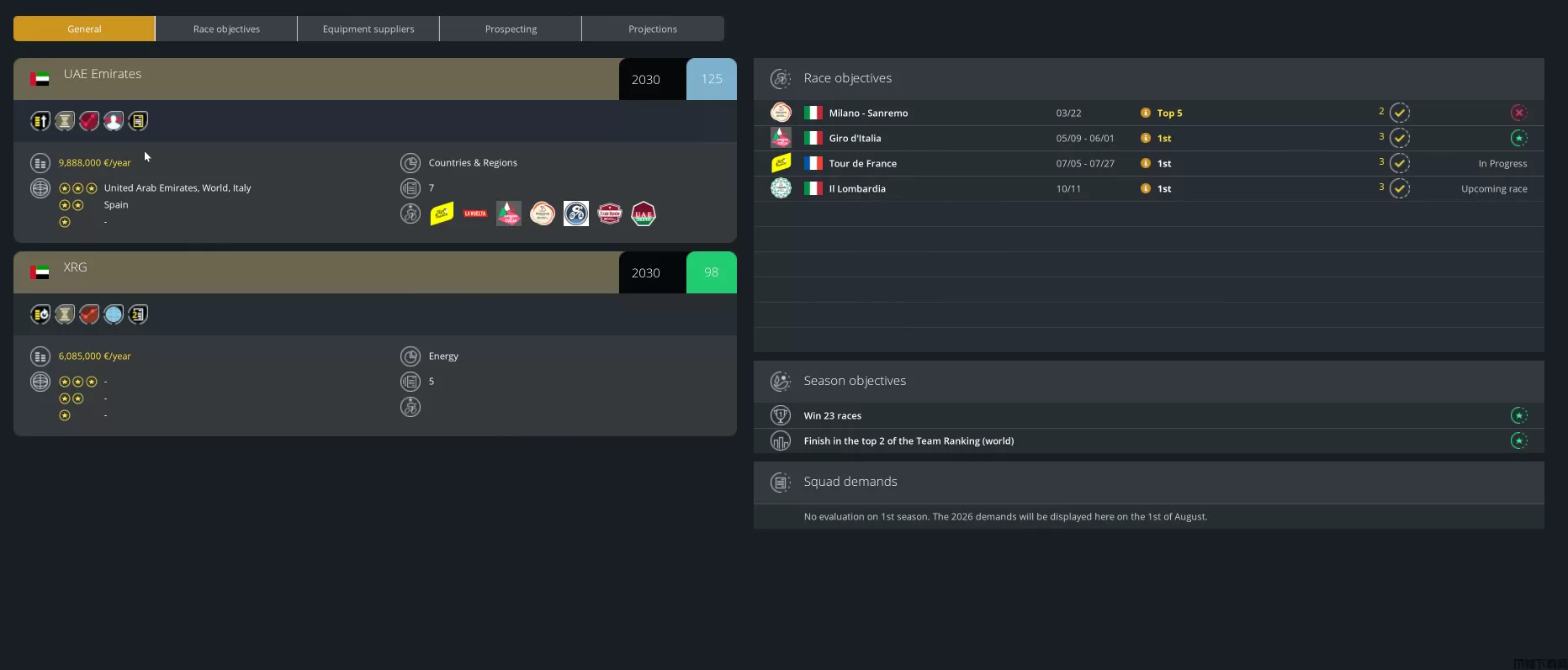 在 Pro Cycling Manager 25 中,赞助商的选择对于您团队的成功至关重要。除了预算优势之外,如果您希望赞助商同意为您的自行车队提供资金,他们现在还需要满足自己的额外参数和条件。