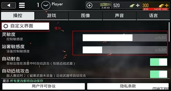 2、这里有灵敏度设置,玩过枪战类游戏的玩家建议选择自定义;