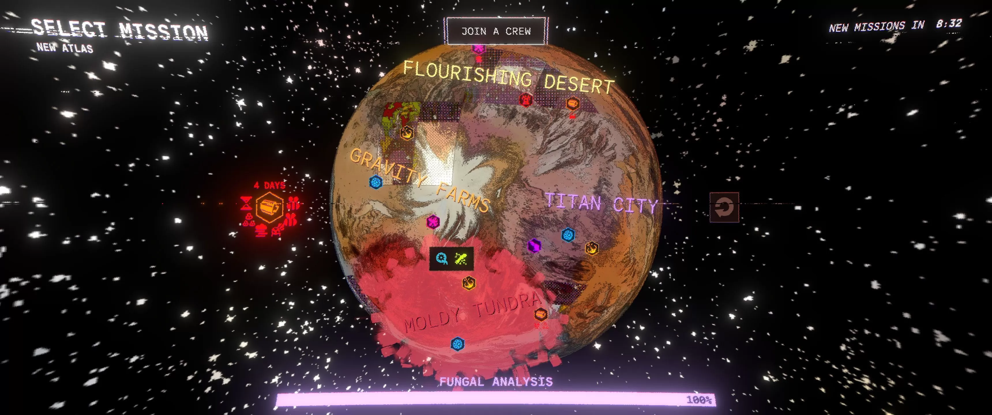 在霉斑苔原选取任务即可开始。任务类型与难度设置无关,任君选择,想挑战多高难度都行。