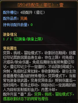 一级配件:猩红输出方面的基础,是刀战、变异模式下远程输出的基础配件。