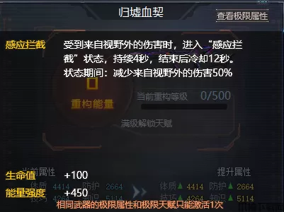 重构需要蓝色碎片5000个,增加400能强,并额外增加1个支援类负荷天赋【感应拦截】。