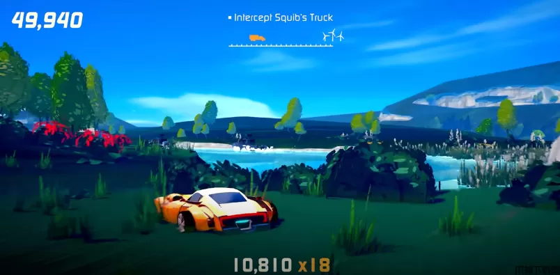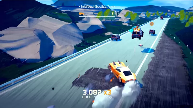 1、游戏开始,玩家需要驾驶车辆追击敌人,追击过程中,需要躲避敌人的进攻。