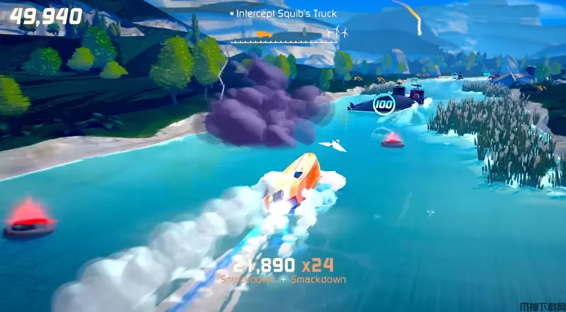 6、冲出瀑布,也需要玩家即时从船只变成赛车,变成其他形态可能就会导致意外的发生。