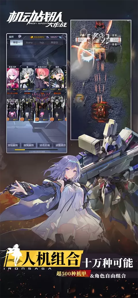 打破惯性思维!超500种机甲&角色自由组合。各种酷炫的人型机甲、立绘皮肤多样的角色机师搭配上阵,使战斗效果千差万别。拥有超过十万种可能的组合方案!宫殿、堡垒、荒漠、大海……各种战斗场景根据剧情无缝切换,攻城拔寨、摧枯拉朽,感受战争的残酷和激情!