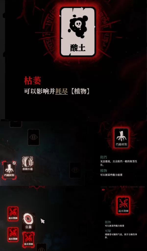 和消化的用法基本类似,酸土主要针对的是挡路树根、渴水荆棘等植物,由于和动物一样都是 符号,所以有时候可能会搞混,注意看是否带有植物词条。