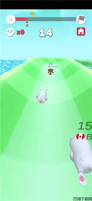 4、在滑道上快速的滑行追上对手,进行碰撞努力的将对手撞出去,获取较高的分数争夺排名。