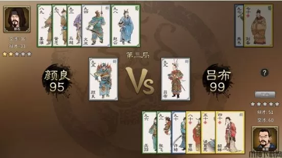 在叶子牌当中,根据手中的牌来判断,因为手牌的数量是与舌战双方的辩才交涉属性相关的,如果牌好,大可以直接吃光对方;如果牌小时,采用田忌赛马的方法,利用己方的小牌骗取对方大牌打出来,从而在其他牌上优于对方。叶子牌采取的是五局三胜制,只需要赢下对方三张牌即可。