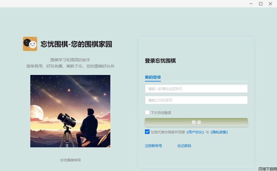忘忧围棋电脑版是专为windows系统所打造的一款围棋桌游,游戏所包含的玩法十分的丰富,比如网络对弈、人机对弈、围棋题库、棋谱库、赛事直播和交流区等功能,所以不管你是初学者还是经验丰富的高手都可以从中找到自己的乐趣,而且游戏还提供了云端的棋