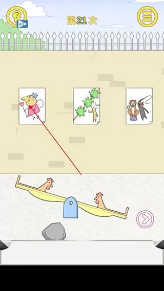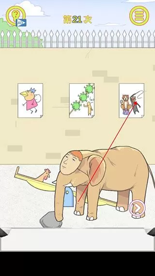 3、第三部,最后从墙上第三幅画上获得鞭子,将鞭子放在大象身上,大象就会跳上跷跷板,日记就会被弹飞。