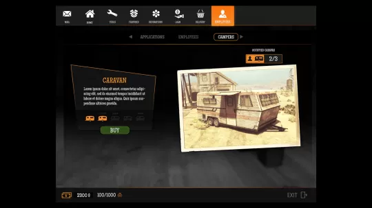 每个员工都有自己独特的数值,不是每个人都注定成为一个收银员,或者在车库里修理引擎。如同之前提到的,你可以在潜在雇员的简历中看到他们的技能。此外,一旦你确定了雇佣人员并开始工作,你需要格外小心。工作一天之后大家都会感到疲劳,尤其是你的工作还在沙漠中。设置合理的工作时间,非必要的话就不要设置加班,付给你的雇员合理的薪水,这些都是必不可少的。随着时间的推移,他们的技能会发生变化,因此留意他们的进步,并且在雇员表现达到你的期望的时候,做出正确的决定。