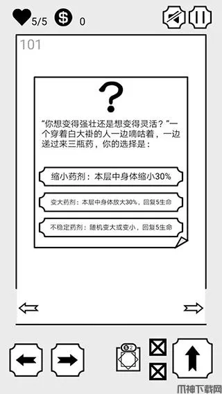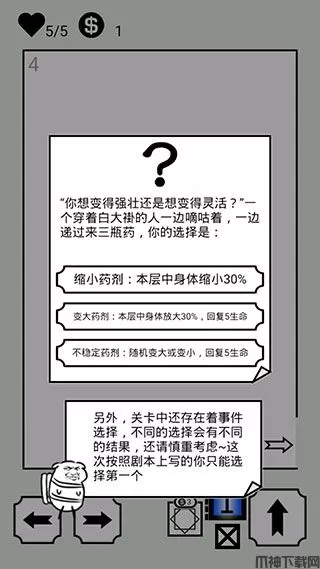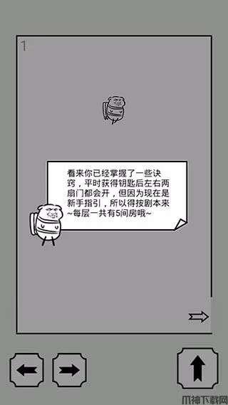 3、看来你已经掌握了一些诀窍,平时获得钥匙后左右两扇门门都会开,但因为现在是新手指引,所以得按剧本来,每层一共有5间房。