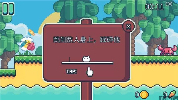 2、遇到敌人只要跳到怪物头顶便可将其消灭。