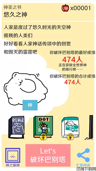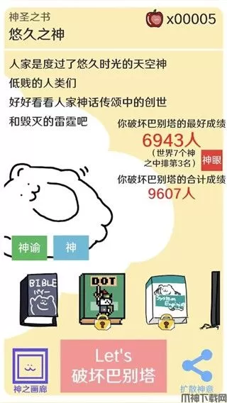 -本游戏有世界排名系统。和全世界的神明竞争吧。