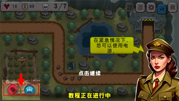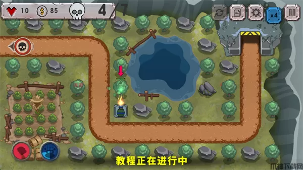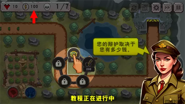 6、可以通过点击炮塔,然后点击周围的大树,来消灭大树,宽展空间,以便建造更多的炮塔。