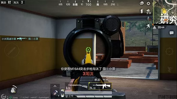 4、到了中后期,队伍在仍存活人数超过两个人的时候,可以考虑步枪+狙击枪,因为在中后期,经常会发生远距离的狙击战,所以一定要学会使用倍镜,哪怕是步枪+步枪的组合,也可以调整成单点模式,进行远距离的射击。