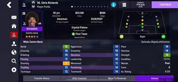 Football Manager 2026ios版的真实性得益于完全授权的UEFA俱乐部比赛。您将亲身参与欧洲冠军联赛、欧洲联赛、欧洲超级杯等精彩比赛,感受顶级足球赛事的激情与荣耀。从比赛的抽签环节到场上精致的官方标识和进球图标,每个细节都为您还原出真实的比赛体验。此外,游戏更是融入了图片导入捏脸功能。您可以根据自己的想法,为经理人定制独特的外貌、发型、配饰和服装。虽然捏脸系统在游戏中的展现较为有限,但这一细节仍增加了游戏的个性和乐趣。如果你喜欢足球,想要参与其中,立即下载该游戏,开启您的足球巅峰之旅!