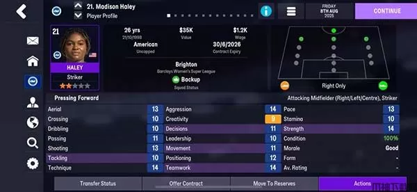 Football Manager 2026 Mobile苹果版是一款超好玩的足球术俱乐部经理模拟游戏。游戏中,您将扮演一名足球俱乐部的经理,拥有自由选择的权利,从一众巨星球员中筛选出心仪的队员,打造一支超级球队,引领他们向世界级球员的巅峰发起冲击。游戏中拥有海量球员,每位球员都有独特的特长,您可以根据他们的潜力和能力,为他们制定个性化的成长路线。通过精心训练和战术指导,逐步提升他们的实力和技能,使他们成为赛场上无可阻挡的存在。