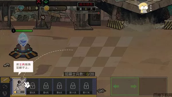 3、将士兵拖拽至格子上,当僵尸来袭时,格子上的士兵将会主动出击僵尸。