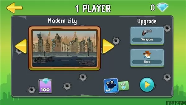 2、这里我们选择玩家1进行示范,进入以后可以选择游戏场景,游戏武器和游戏英雄;