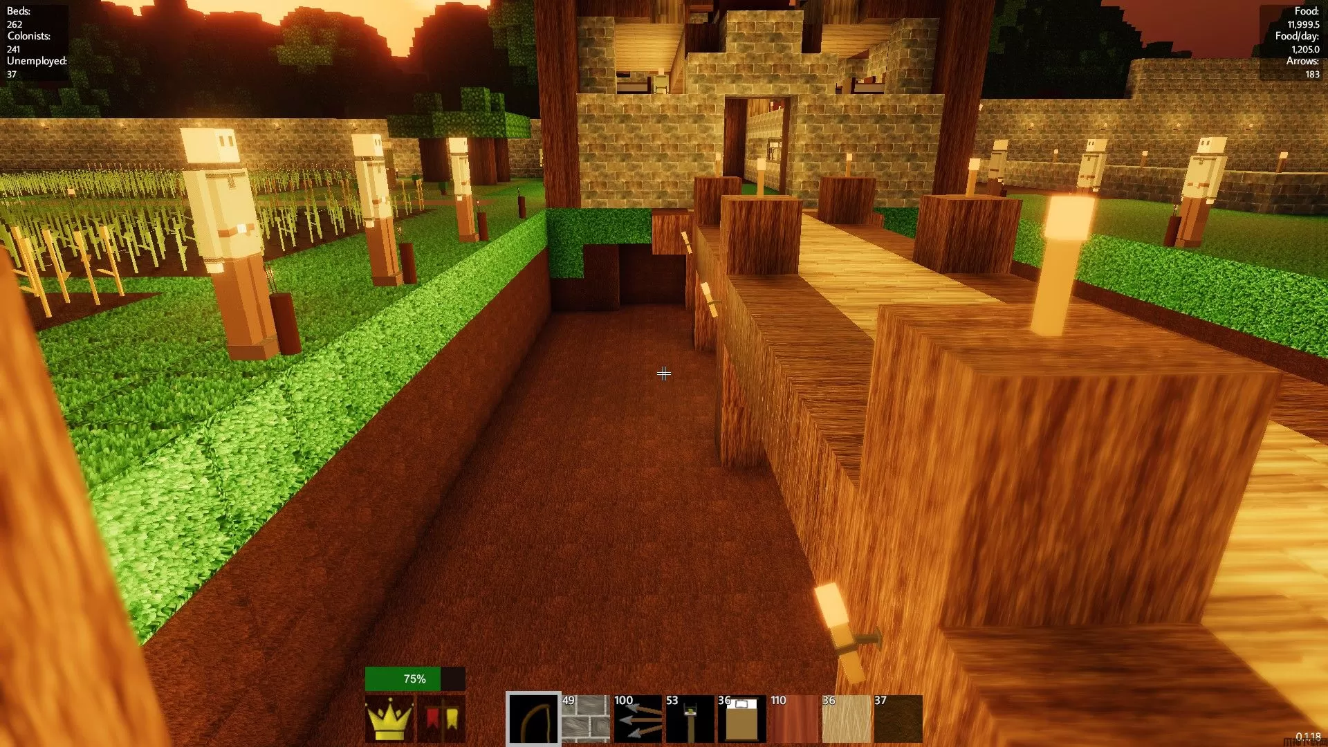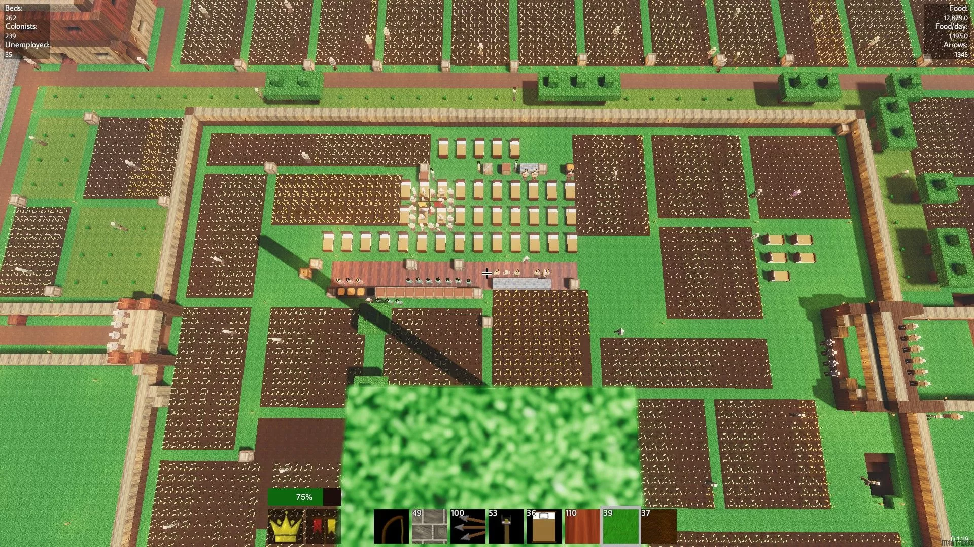 你的农场将建在地下深处,因此我们必须采取一些措施来确保它们正常运作。为此,你需要泥土(草会变成泥土,所以可以用)。在挖掘护城河阶段你会获得大量的草/泥土,所以这方面不用担心。