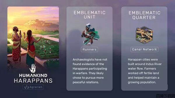 哈拉帕文明的城市建立于繁荣的印度河谷地区,农民们在这片河流灌溉的繁荣土地上劳作,人口飞速增长。在游戏中,哈拉帕属于青铜时代文明。