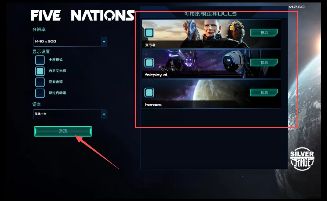 3、这样就完成游戏中文的设置了,点击屏幕左下角的“游玩”就可以开始游戏了。