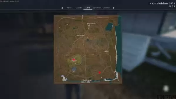 外的赚钱方法,那么打猎就是最好的选择。通过打猎获得战利品也能拿去卖,对于前期是非常重要的收入途径之一,下面我们就为玩家推荐一下通过打猎快速赚钱的方法。 首先明确一下狩猎的目标是熊,伴随着危险性,因此也需要做足准备,玩家在出发前去买些装备,诸如枪、子弹等物品,然后触发前往目的地。目的地在地图南部,参考下面这张地图的标记点,记得是开车去,要搬运的: