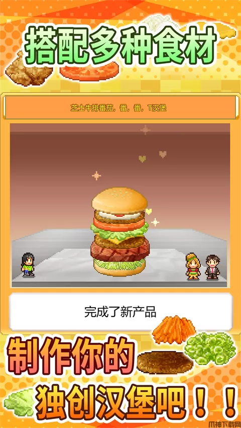 创意汉堡物语ios版是一款像素风经营养成游戏,以汉堡店为核心,组合不同食材解锁新汉堡,打造人气汉堡店铺。游戏无固定配方限制,玩家可研发出上千种独创汉堡,还可解锁薯条、沙拉、甜点、饮品等副餐,打造完整菜单吸引不同客群。玩家需不断调试配方解锁招牌菜品,以提升吸引更多客人,并通过布置店面、升级设备、升级员工等方式进一步提升店铺人气,向连锁帝国出发!