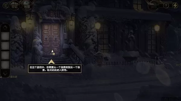 4、在这个游戏中,你需要从一个场景转到另一个场景,轻点门,即可进入旅馆。