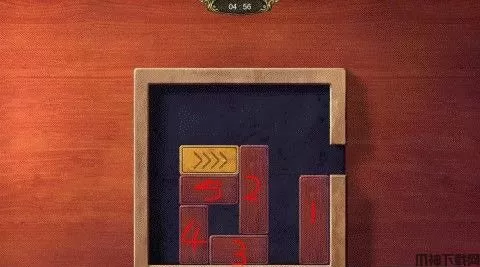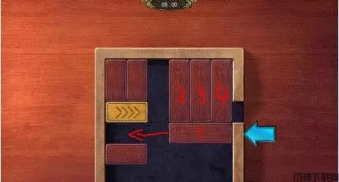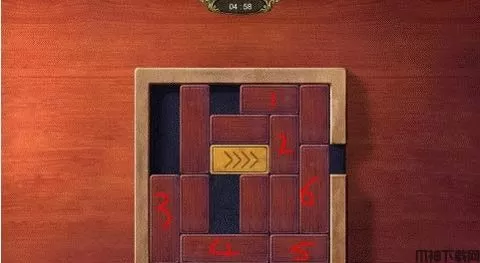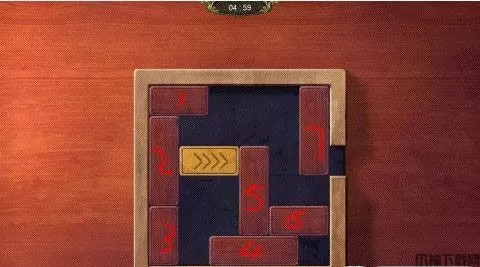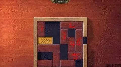 4、最后并按图中标记的顺序移动先移动5,向下移动6,移动黄色木块,然后按顺序移动木块就好了。