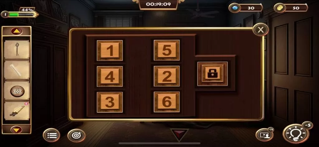 从盒子里取出书,然后点击房间右侧沙发旁的书架。打开书架,从你的物品栏中添加三本缺少的书来填补空缺。按照“1-2-3-4-5”的顺序旋转书架上的书,即可解开谜题。