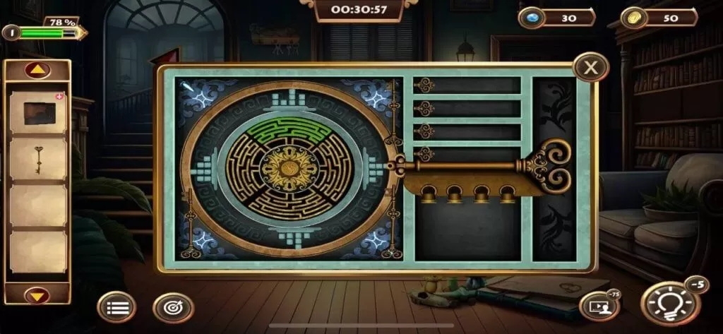 使用物品栏中的钥匙完成这个“四把钥匙谜题”。首先,集中注意力观察左侧圆圈中高亮显示的部分。然后,将圆圈外缘的方块高度与右侧的四个齿/缺口对齐。对所有四个部分重复此步骤。