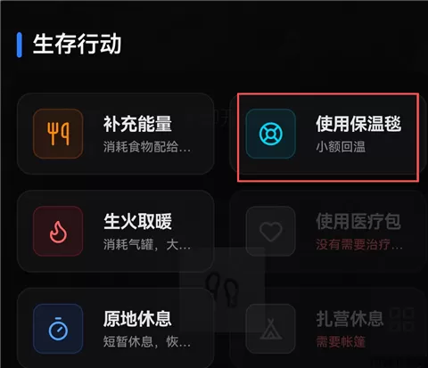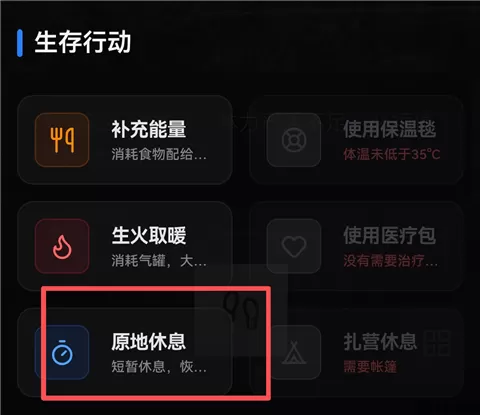5、此时体力严重不足,点击右下角图标,选择【补充能量】或者【原地休息】补充体力。