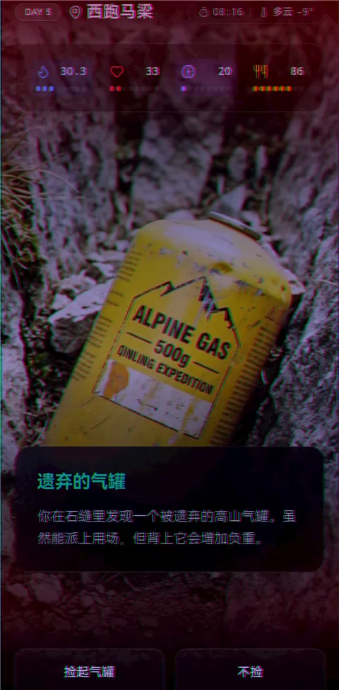 7、遇见突发事件,可以捡起气罐,但会增加负重,也可以不捡。