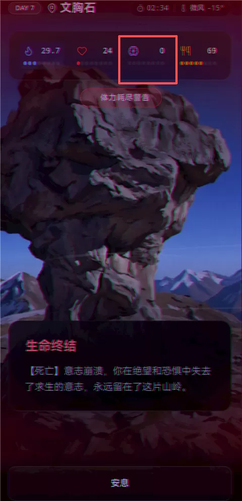 1、纯文字+配图的极简界面,却能营造强烈的生存压迫感。