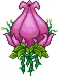 召唤方式:丛林地下中会随机生成粉色的“世纪之花球茎”,使用炸弹或镐破坏后召唤世纪之花,记得提前挖好战斗场地。