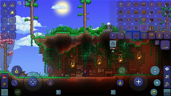 游戏主要分两种模式:探险模式和创造模式,探险模式是游戏的核心,玩家在其中可以从地下到天空上探索一个充满了各种生物和资源的世界,通过挖掘和战斗来获取各种材料,制作武器和装备,最终打败各类BOSS;创造模式则为玩家提供了无限制的资源,可以自由进行建造和创作。泰拉瑞亚ios版内还有非常多的物品和装饰,玩家可以通过自己的想象力来创造出各种新奇的建筑和艺术品。如果你喜欢像素风格和沙盒游戏,或者喜欢探险和创造,那么泰拉瑞亚ios版绝对是一款不容错过的游戏。