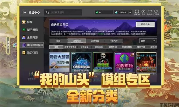 - “我的山头”模组专区全新升级,现已支持分类检索功能。模组按玩法、类型、热度等维度清晰归类,冒险家可轻松筛选并找到不同风格的模组集合。界面浏览更直观,搜索筛选更精准,寻找心仪模组从未如此简单。体验更便捷的模组之旅,尽在“我的山头”全新模组分类专区!"
