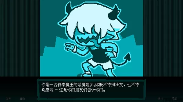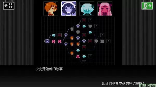 坏结局剧院游戏手机版是一款像素风格的剧情解谜手游,游戏通过文字对话搭配图片场景的方式来展现不同的故事,玩家在游戏中可以选择四种不同的角色,分别勇者、少女、喽啰以及魔王,每位角色的属性都不一样,在玩家选择时对应的角色下方都会有对每个角色的形容