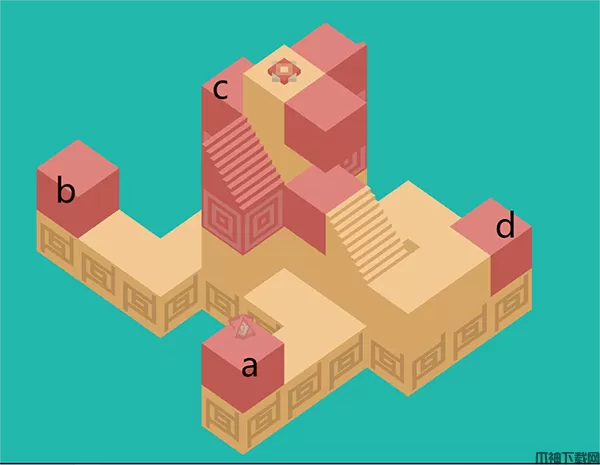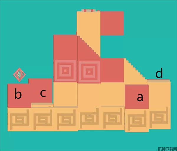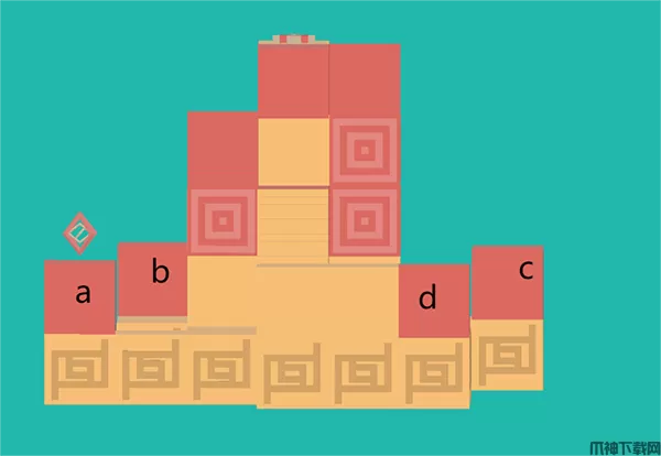 1、先给四个小红色区域标记abcd,游戏初始人物处于a。