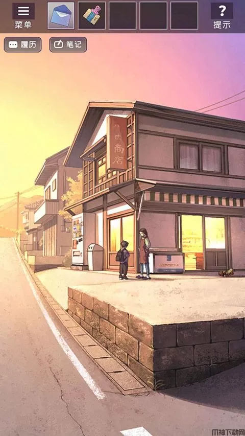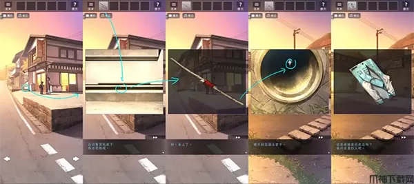 与幽灵对话后来到街道。与商店老板对话后调查商店门口,分别点击门口的草和猫爪印,之后来到河川处点击幽灵。再次回到店门口与弟弟对话得到弟弟的零花钱。