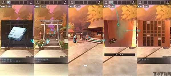 与幽灵对话拿到手帕,在水里打湿,之后进入神社与神主爷爷对话,用手帕抹去上面的灰尘获得解锁提示。