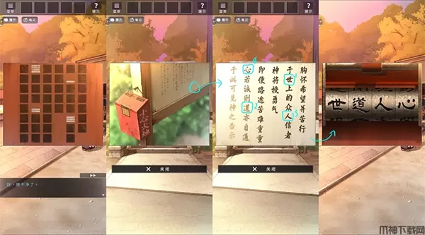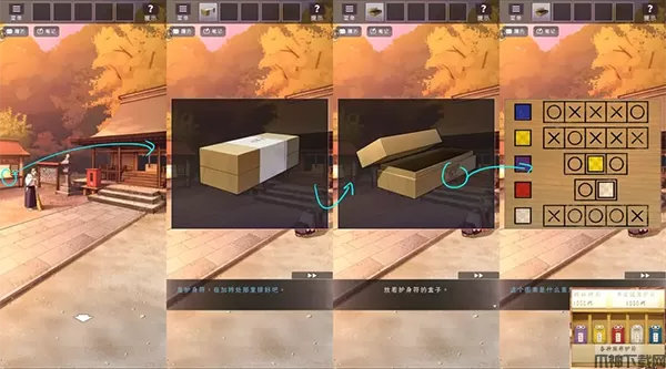 之后与神主对话获得箱子,在箱子上查看提示并排好护身符。